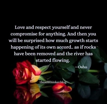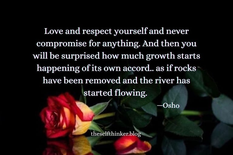 " Love and respect yourself and never compromise for anything. And then you will be surprised how much growth starts happening of its own accord.. as if rocks have been removed and the river has started flowing."