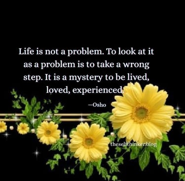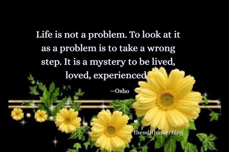 " Life is not a problem. To look at it as a problem is to take a wrong step. It is a mystery to be lived, loved, experienced."