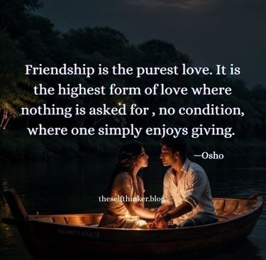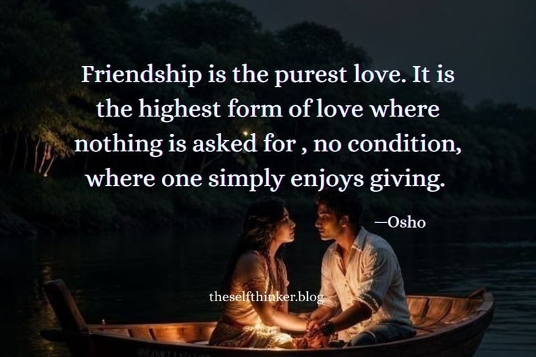 " Friendship is the purest love. It is the highest form of Love where nothing is asked for, no condition, where one simply enjoys giving."