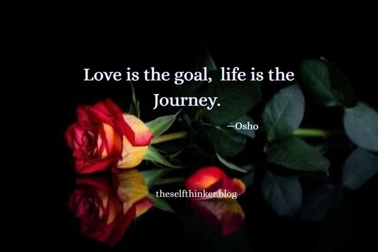 " Falling in love, you remain a child; rising in love, you mature. By and by love becomes not a relationship, it becomes a state of your being. Not that you are in love - now you are love."