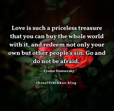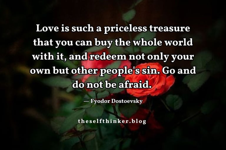 " Love is such a priceless treasure that you can buy the whole world with it, and redeem not only your own but other people's sins. Go, and do not be afraid."
