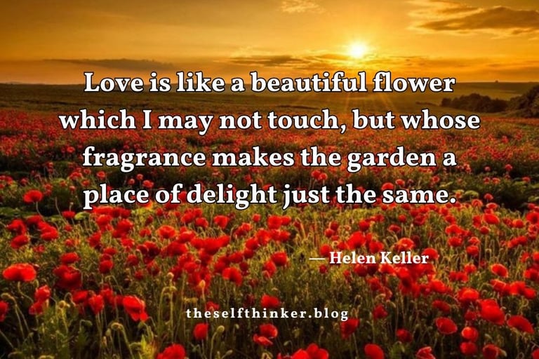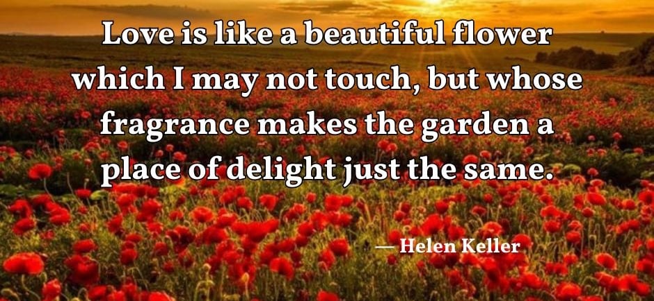 " Love is like a beautiful flower which I may not touch, but whose fragrance makes the garden a place of delight just the same."