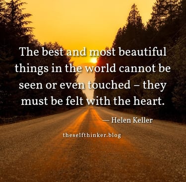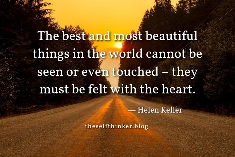 Helen Keller emphasized the significance of self-reflection and understanding one's purpose. She stated, "The best and most beautiful things in the world cannot be seen or even heard but must be felt with the heart." This reminds us to look beyond materialistic achievements and recognize the emotional and spiritual dimensions of life.
