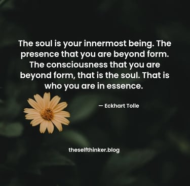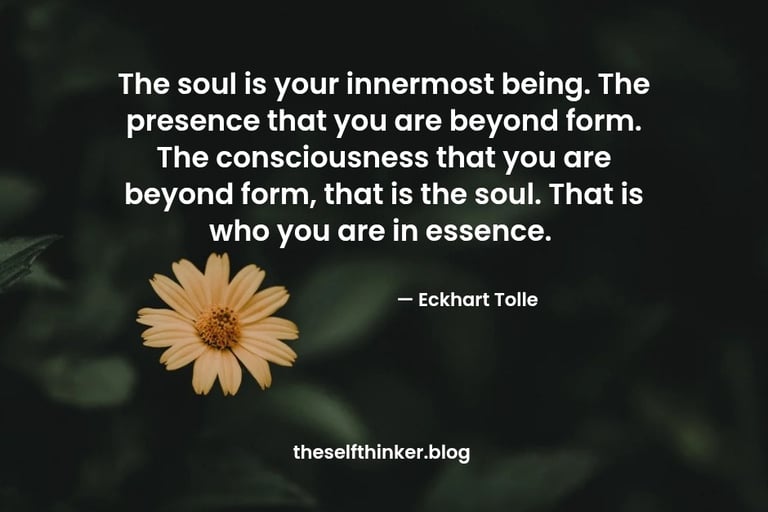 " The soul is your innermost being. The presence that you are beyond form. The consciousness that you are beyond form, that is the soul. That is who you are in essence."