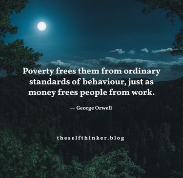 "People are wrong when they think that an unemployed man only worries about losing his wages; on the contrary, an illiterate man, with the work habit in his bones, needs work even more than he needs money. An educated man can put up with enforced idleness, which is one of the worst evils of poverty. But a man like Paddy, with no means of filling up time, is as miserable out of work as a dog on the chain."