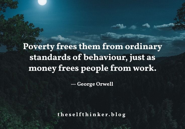 " It is the peculiar lowness of poverty that you discover first; the shifts that it puts you to, the complicated meanness, the crust-wiping."