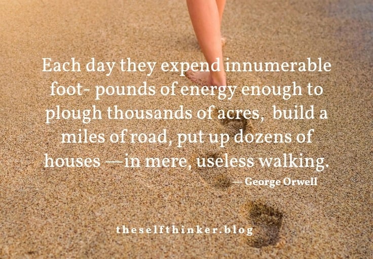 "“Each day they expend innumerable foot-pounds of energy—enough to plough thousands of acres, build miles of road, put up dozens of houses—in mere, useless walking."